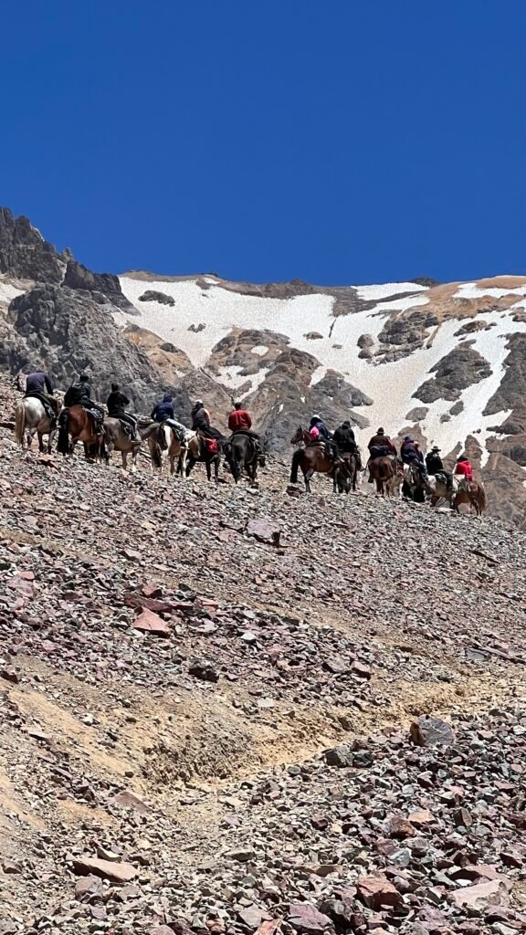 Después de algunas 4 o 5 hora a caballo subiendo pendientes, bajo el rayo de sol que ilumina la montaña mientras vas cayendo en cuenta que estás realizando el sueño y que cada vez está más cerca, llegamos al campamento, donde nos instalamos para pasar en el domo la primera noche. ¡Que noche tan más increíble! ¡Jamás había visto un cielo tan espectacular en mi vida!